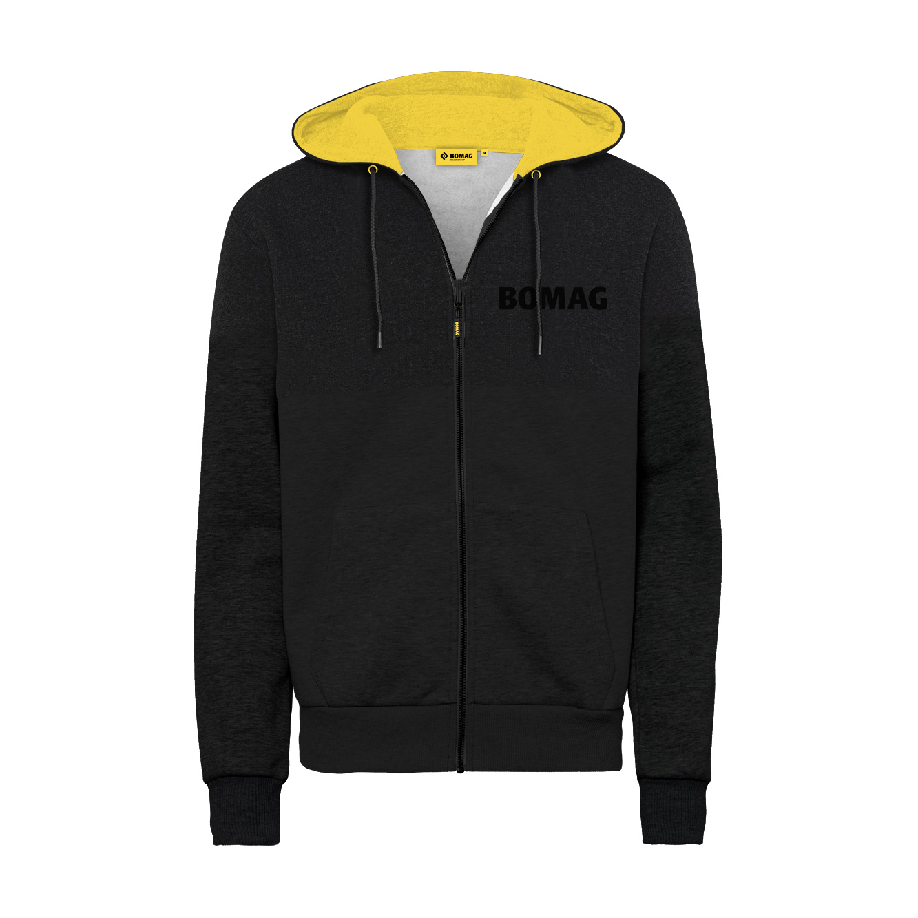 Details: Durchgehender Reißverschluss für flexibles An- und Ausziehen – auch mit Handschuhen, Kapuze mit Kordelzug – schützt zuverlässig bei Wind und Wetter, Elastisch an Bund und Ärmeln für optimale Passform bei jeder Bewegung, Farblich abgesetzte Kapuze setzt dezente Akzente und unterstreicht den modernen Look, Individueller BOMAG-Zipper Puller – ein kleines Detail mit großem Wiedererkennungswert.
