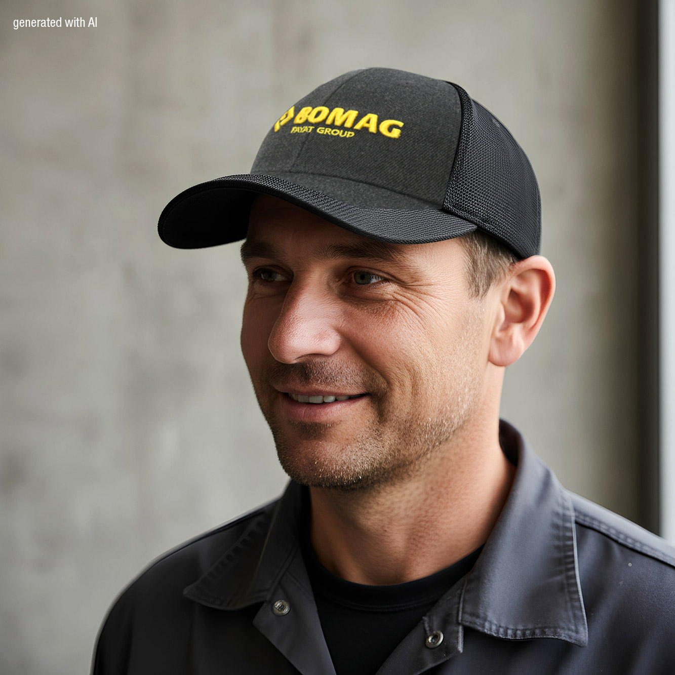 The BOMAG trucker cap offers ideal heat dissipation and breathability thanks to the mesh on the back.
